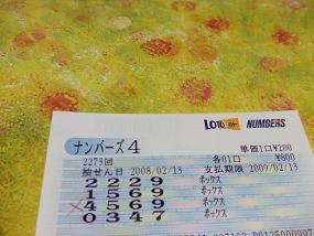 苦い N4の予想 2008年02月13日 本日2月13日(水) 2273回結果 「7694」 結果を見て思った。 昨日の予想ノートに 「4679」 があったことを・・。 どちらにしても買ってない。(涙) 若大将~! ある計算により、+15日 明日は、14日である。 おっ、バレンタインデーだ。 多分、チョコは・・・・(苦笑) 売り場でのひらめきで追加 (鈍) 御当選された方、おめでとうございます。 そして明日もがんばる。 PR
