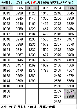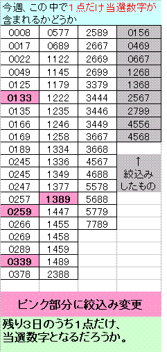 今週 この中で1点、当選数字が含まれるかどうか・・・。