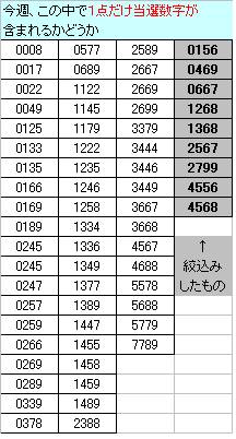 月曜に出しておいた<数字群の絞り込み>