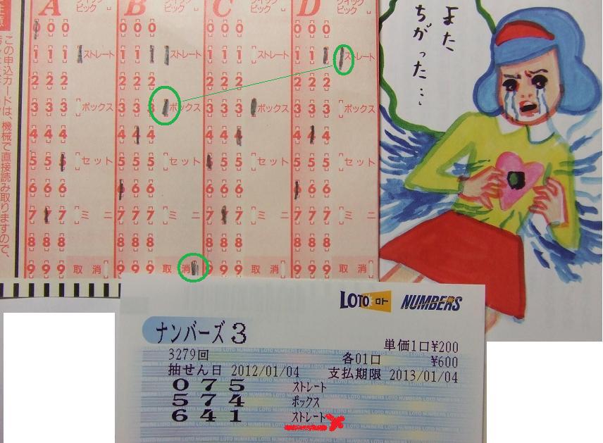 たまたま近くにいた身内に、ナンバーズ3を1つだけ書いてもらった。